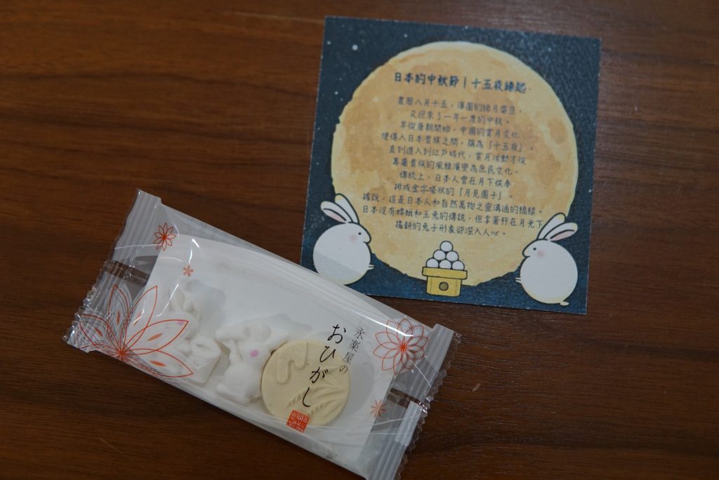 我們特別準備給在中秋期間(9/12-9/13)來住福辦公室辦理入住手續的客人京都永樂屋的月見甜點「お干菓子」。以日本傳統和三盆糖製作,入口即溶,只留下舌尖上高雅溫潤的甜味。黃澄澄的滿月🌕和別緻的玉兔🐇造型讓人捨不得太快吃掉!