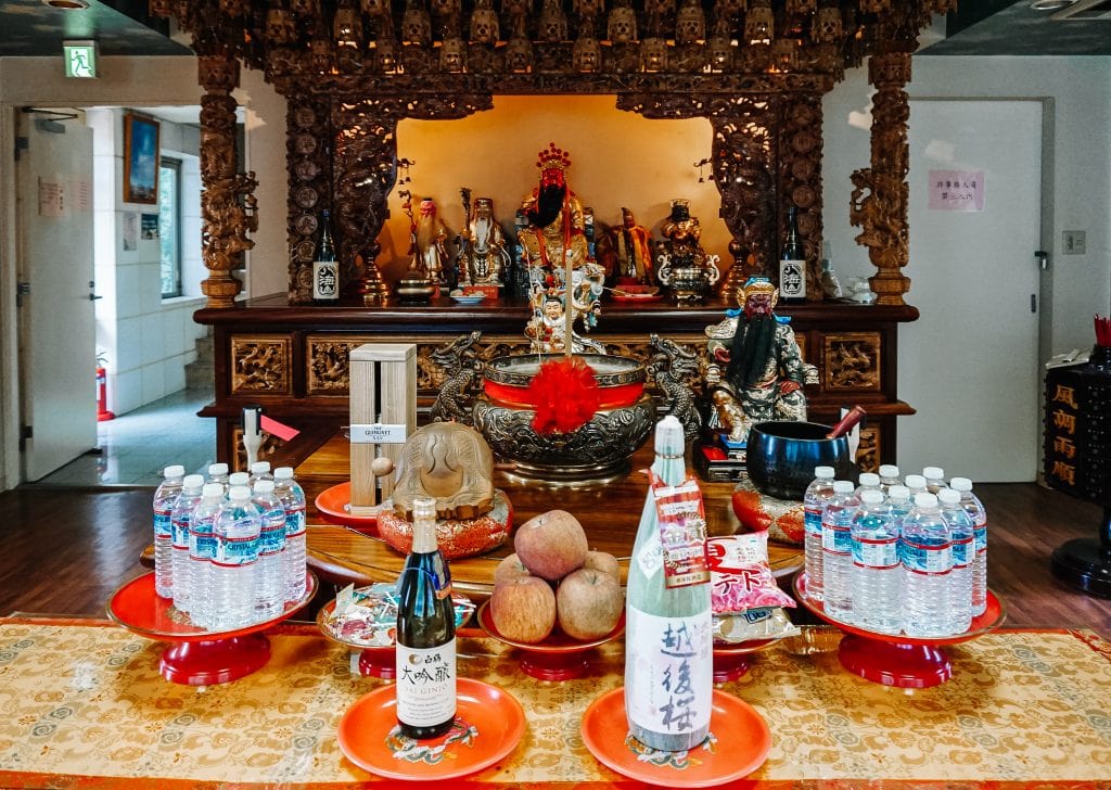 廟方煞費苦心地從台灣的北港朝天宮和福建泉州天后宮各自迎來媽祖分靈:粉面、黑面、金面天上聖母並駕齊驅,共同守護蒼生。除了媽祖神像以外,這座佔地不大的廟共有四層樓,供奉了觀音菩薩、月下老人、土地公和關聖帝君等神祇,可說將台灣人的熟悉的神祇都集中於此。探訪當日,廟內除了有當地的好奇的民眾,還有在東京讀書的留學生。問他們怎麼會知道這裡?同學們說是在google查到的,拜媽祖娘娘讓他們感覺有種回到家鄉的安心感。