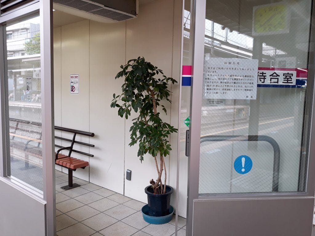 幾乎每個車站都有一間休息室在月台上,但是由於疫情的關係,電車裡的車窗都會打開換氣,等候室的自動門也都開敞著,讓左右的門可以通風換氣,為的是減少病毒滯留的可能性,站長還特別解釋如果當日最高溫高達30度,為了防止大家中暑,將開啟等待室內的空調,並讓自動門正常運轉,還請大家多多理解。 看著平常坐滿等待電車的人的等待室,今天卻完全沒人,懷念那個可以到處去玩都不用擔心被傳染肺炎的東京,大家是不是也都有同感…?
