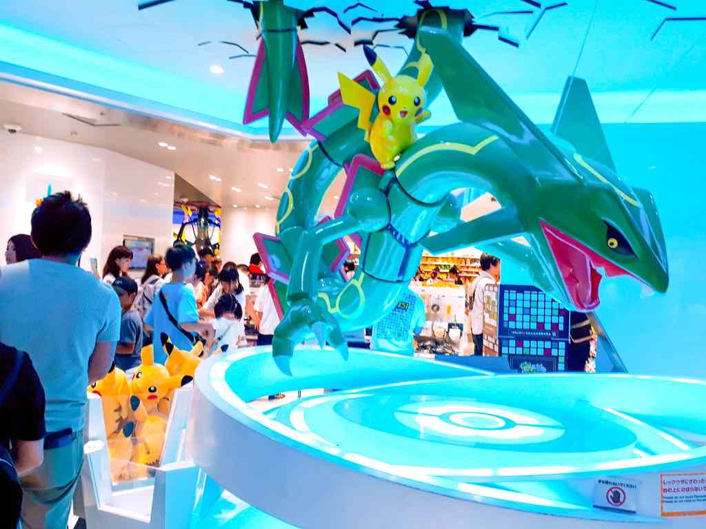 對!說到晴空塔寶可夢中心,就不得不提那懸掛在門口的烈空坐模型,真的很大隻,奪人眼球。