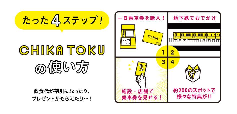 最特別的是,這張交通券還採用限量原創設計,對鐵道迷來說也是必收藏的一張票卡✨整組套票原價為 3,900 日圓,現在只要 3,130 日圓,門票+交通一次搞定,真的非常划算。更棒的是,還能搭配「ちかとく(CHIKA TOKU)」一日券限定優惠活動,在合作店家享受折扣或好禮,加值又省錢,對小資旅行者來說,簡直是荷包救星!那麼,整個套票究竟有哪些內容呢?讓我們來一一看看👇