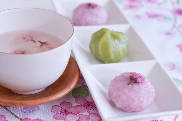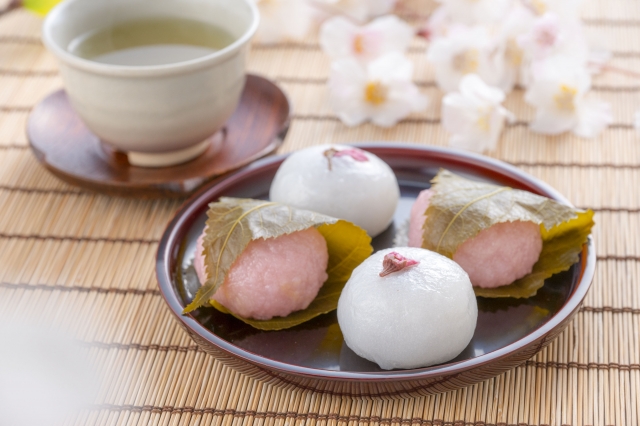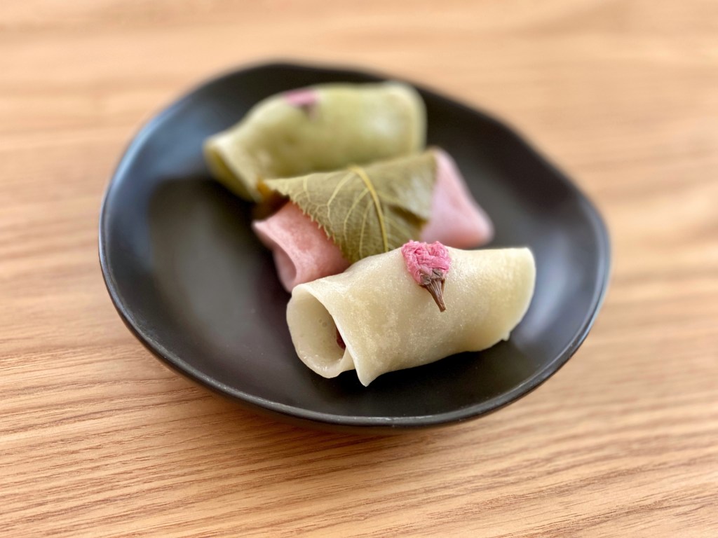 櫻餅被稱為春天的味道,關東及關西的櫻餅不太一樣,關東的櫻餅是使用麵粉製成的麵糊,煎成粉紅色的餅皮,再包上紅豆餡,表面在包上鹽漬櫻葉,口感接近糕點,甜甜鹹鹹的。