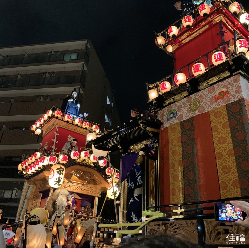 On festival day, the floats traverse various parts of the city, parading along central streets with traditional music playing as the procession moves. When multiple floats converge at intersections, the grand spectacle is truly impressive and a sight to behold in person!