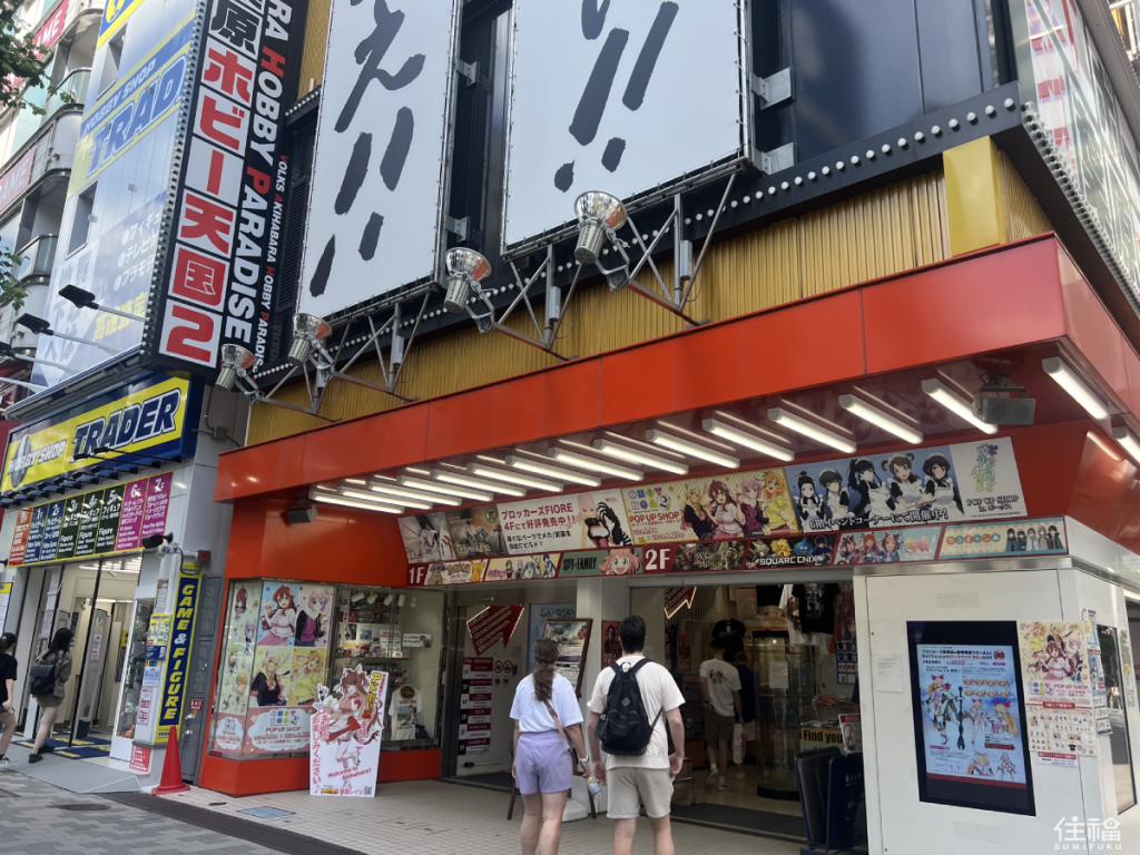 By far the most iconic store in all of Akihabara, Akihabara Radio Kaikan is directly outside the South Exit of Akihabara Station. With its distinctive bright yellow exterior, this mega complex consists of ten floors and is home to various stores selling action figures, trading cards, idol goods, and much more. If you don’t want to spend hours walking around the other smaller shops in the area, visiting Akihabara Radio Kaikan is ideal, as it is like a one-stop shop for stereotypical Akihabara goods.