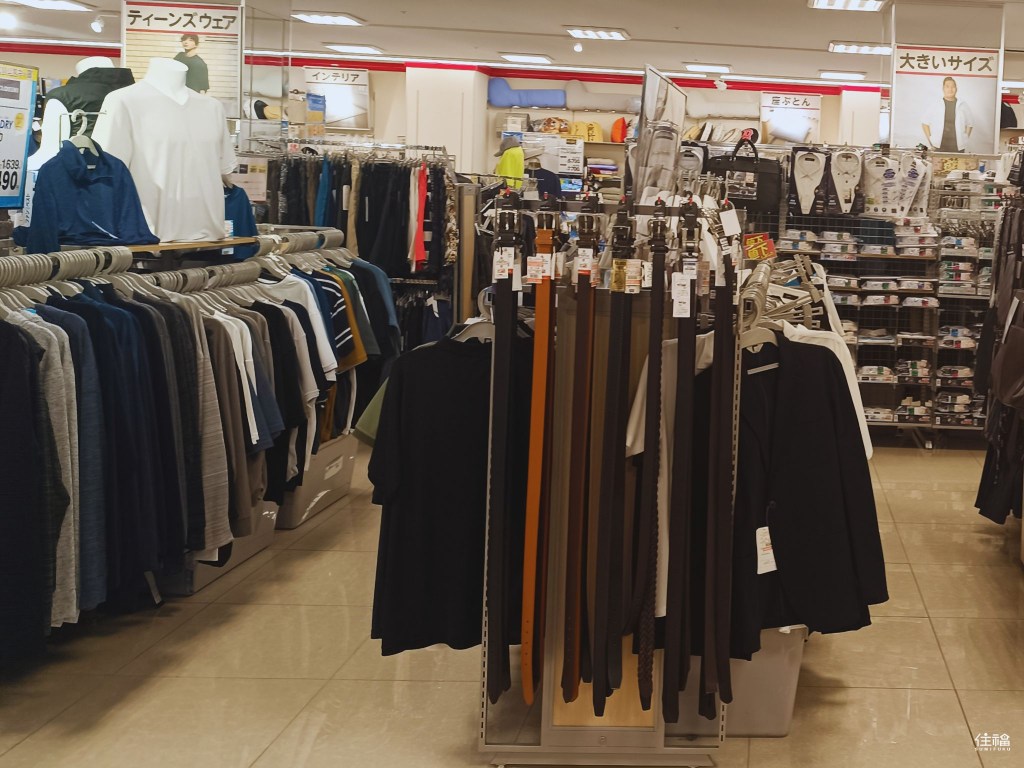 The men’s section of Shimamura is noticeably smaller than the women’s section. However, you can still find a good range of clothing from casual wear to business attire, as well as accessories like belts, hats, and bags. Large sizes are also available in men’s wear.