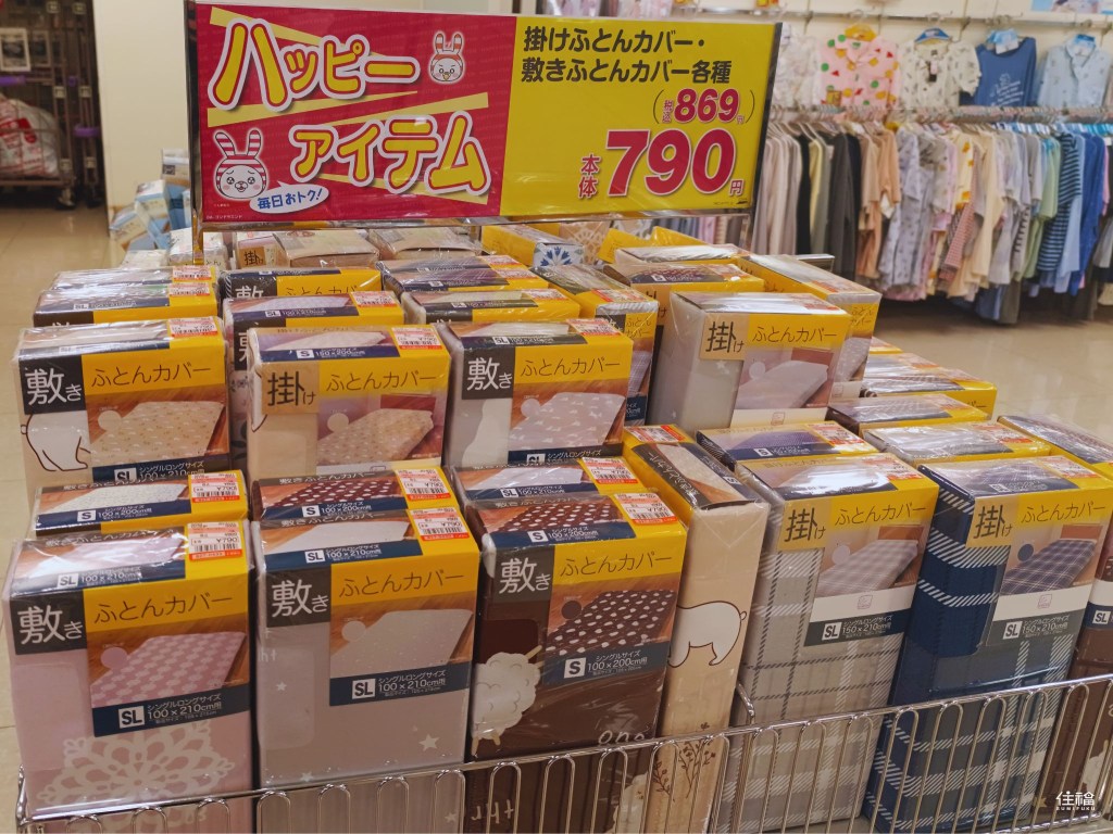 If you are lucky, you might just score some character or anime-themed bedding for cheap too! Futon covers and other bedding starts at around ¥790 to ¥1089.