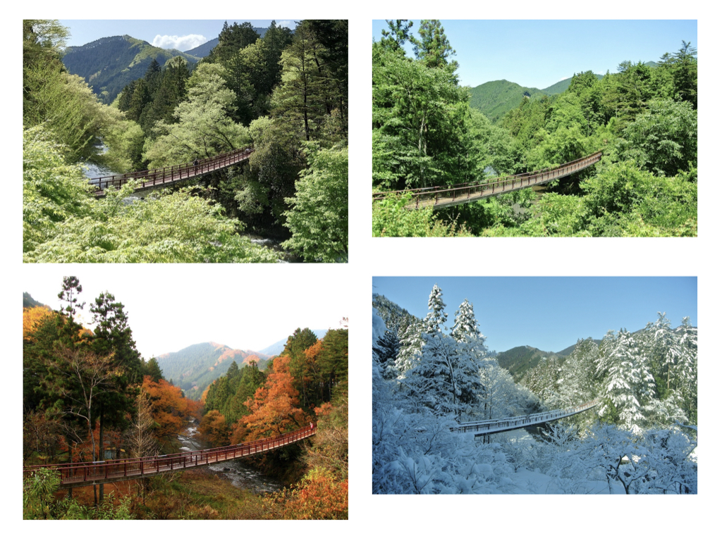 秋川溪谷的「石舟橋」是這裡的地標,也是欣賞四季美景的最佳地點。