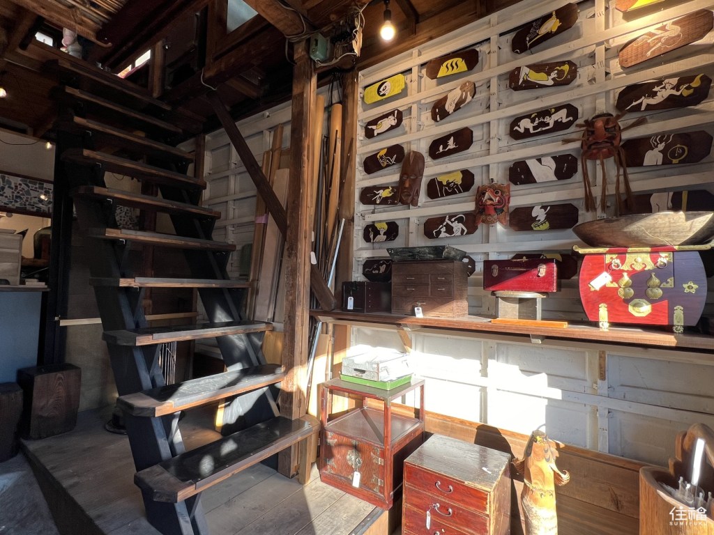 店家主要販售的物品是在二樓,小心地往上走,各式雜貨、道具映入眼簾。