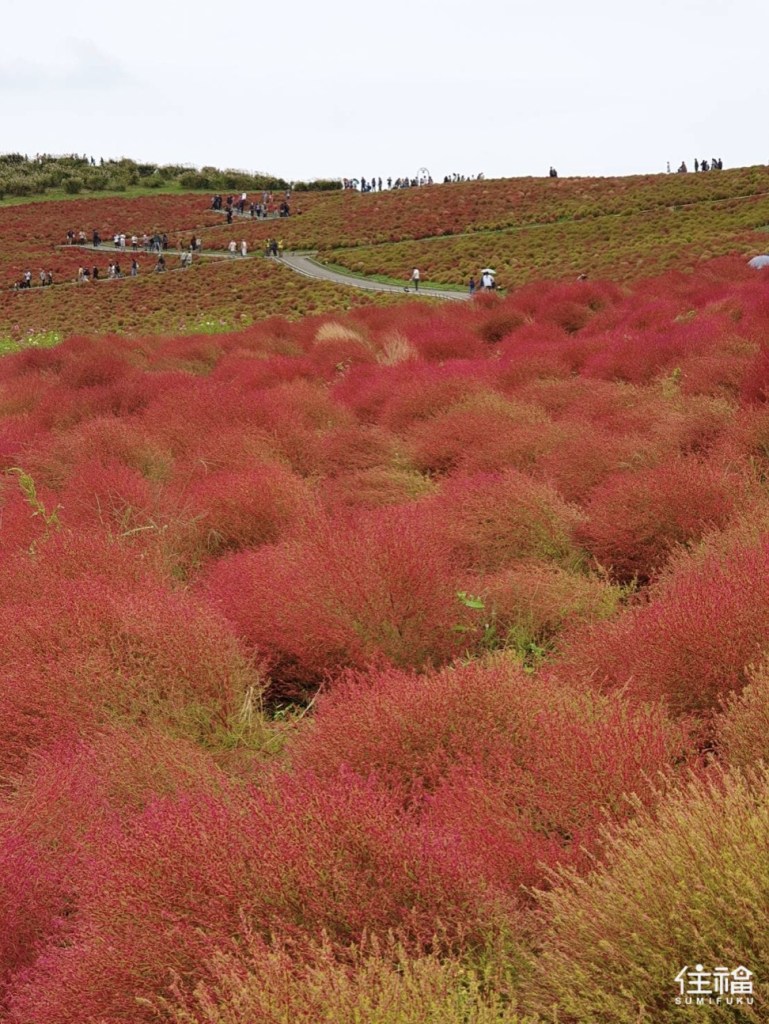 其中最受歡迎的除了春季5月左右的浪漫粉蝶花之外,還有秋季限定的掃把草。