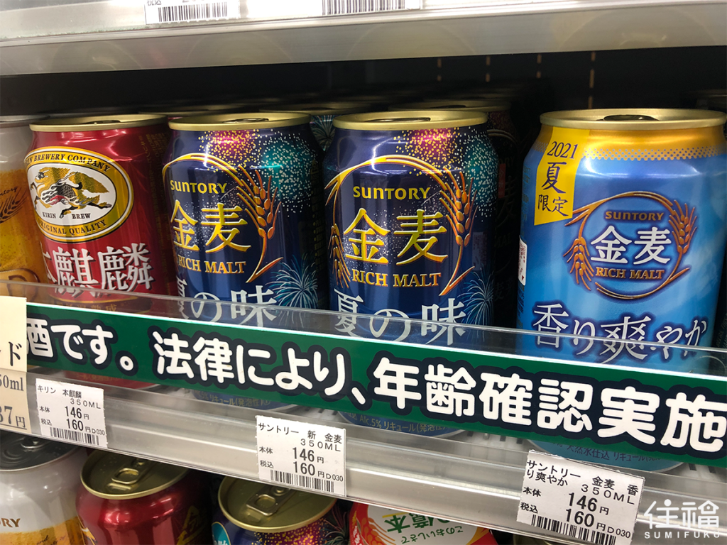 三得利(サントリー SUNTORY)的總公司位於日本大阪,以製造威士忌出名,基本上喜好威士忌的人都知道這個品牌,像經典的三得利ー響、三得利ー山崎、三得利ー知多等都受到相當多人的喜好和珍藏,而三得利在啤酒領域也相當出色,推出相當多系列,其中像金麦啤酒因為季節變化讓麥芽在四季採收時有著不同口感的呈現,春天是清淡口感、夏天是清爽口感、秋天是圓潤口感、冬天是濃厚口感,可說是將麥芽的特色表現的淋漓盡致。