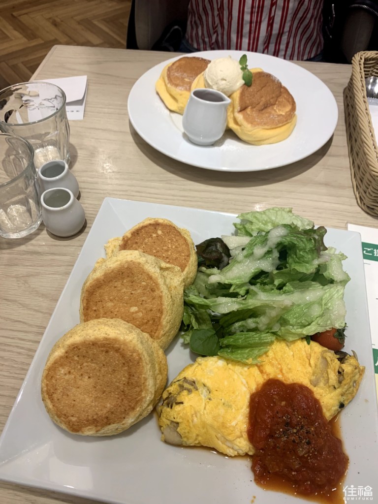 This pancake chain has one of the most extensive menus, offering both sweet and savoury options. From matcha flavoured pancakes to savoury pancakes served with an omelette, there is something that everyone will enjoy. Prices start from around ¥1380 and there is even an option to add a set drink for an extra ¥330.