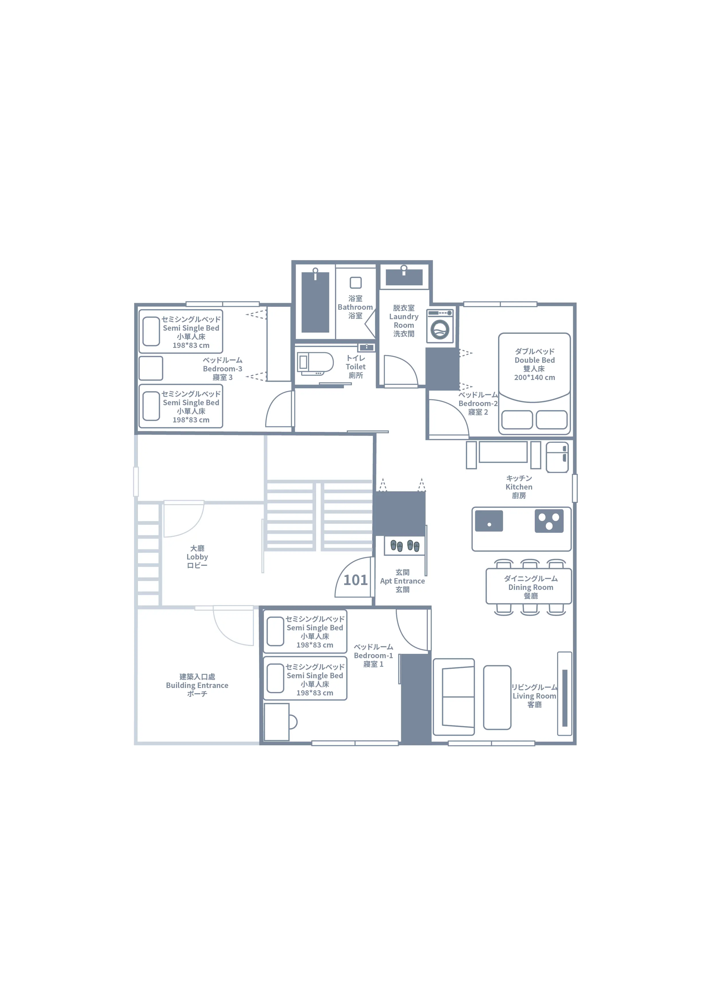 We offer 4 types of rooms: 3LDK、2LDK、1DK and Studio.