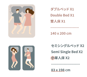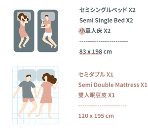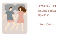 - 開放自由ルーム x 1(セミダブルサイズ スリーピー・トフ布団セット配置)