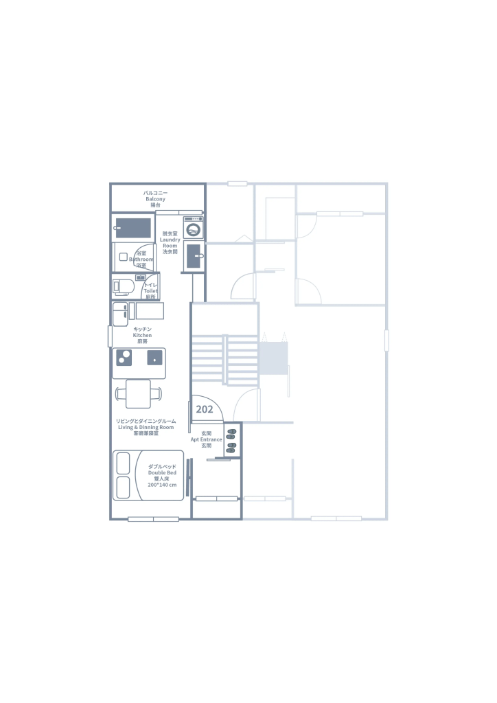 ベルカアパートメントは、多文化が交差する東新宿/新大久保エリアに位置しています。賑やかな大通りから一本入ると、静かな日本の住宅街が広がります。3階建ての建物はシンプルなデザインで、客室は温かみのある木目調を基調にし、広々とした空間と良好な採光で、快適で落ち着いた生活空間を提供しています。