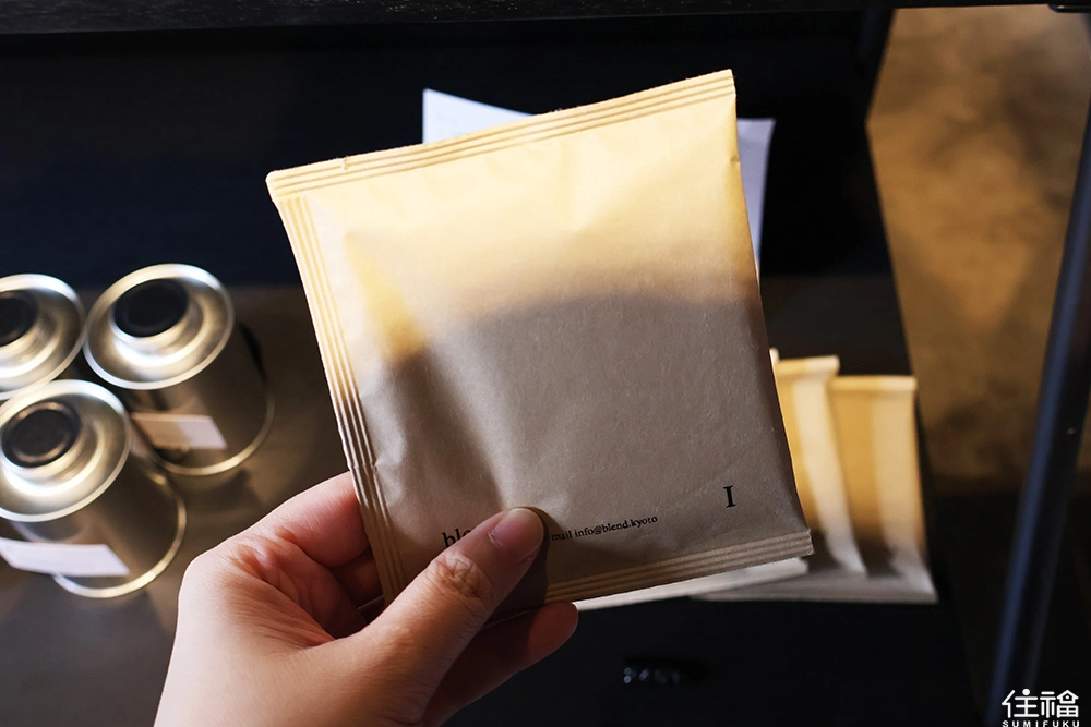 品牌 blend kyoto 自 2023 年開始自家烘焙,主打淺焙單一產區(Single Origin)」豆款。因此你可以在櫃檯前看見有許多豆款,你可以打開罐裝咖啡豆試聞,選擇喜歡的豆子,至多可搭配兩種咖啡豆風味,打造出自己喜歡的手沖咖啡。