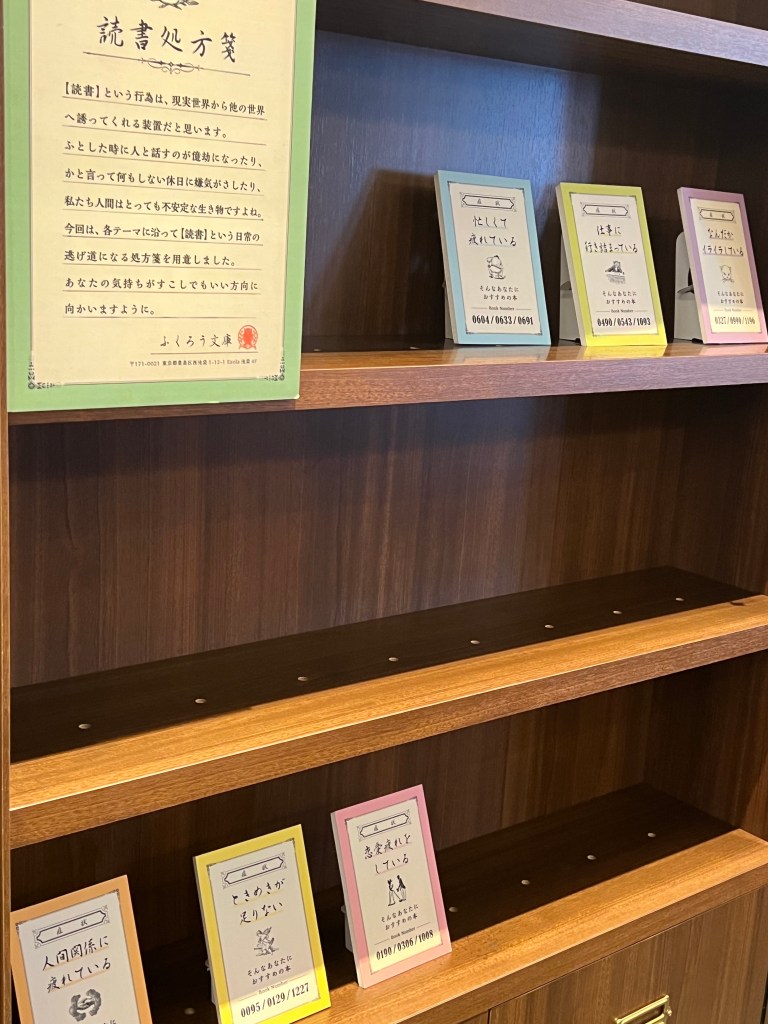 After this, you should take a moment to explore the shelves in front of the cashier desk as they are filled with different books which you can purchase and take home with you. One of the coolest things about Fukuroshosabo is that they sell mystery titles for around ¥500. You won’t know what book you have picked until you have bought it and unwrapped the cover, making this a fun way to discover new books, authors and genres. Though it should be noted that all the books on sale are written in Japanese.
