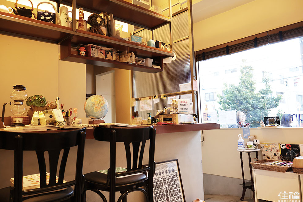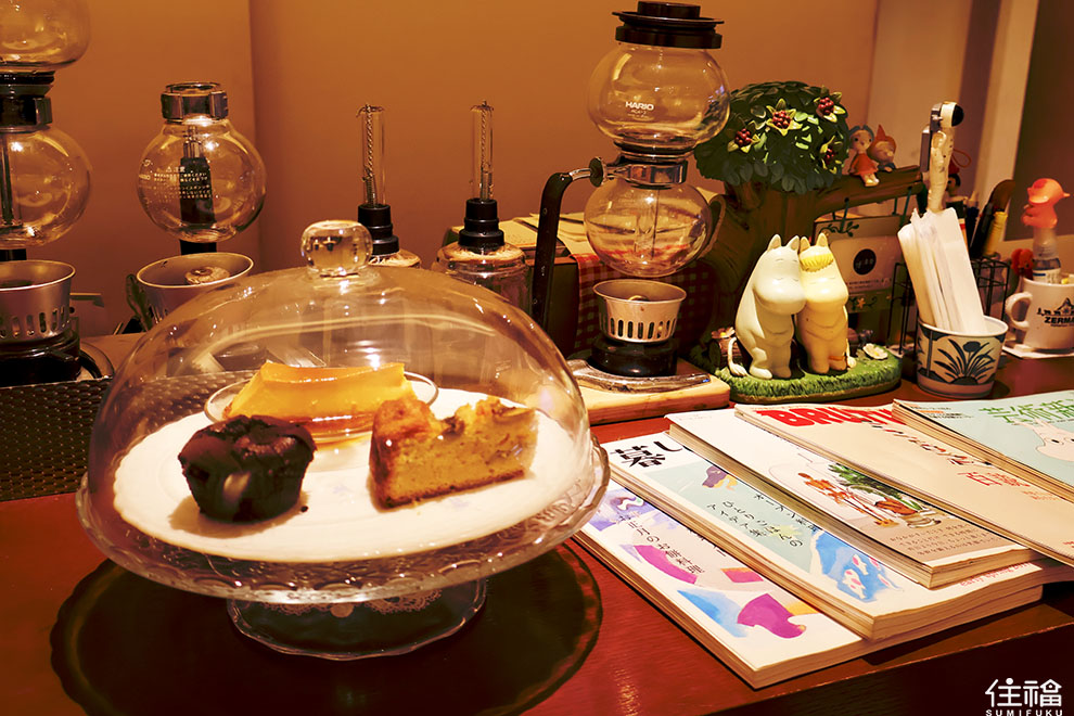 今天要介紹的這間「カフェ清澄」咖啡廳,小巧可愛,店內座席 14 個,開門入店的瞬間,我能感覺到這間咖啡廳的溫馨之處,怎麼說呢?吧台裡頭站著兩個女生,一看便知道是女主人與她的母親,兩人一邊忙著招呼客人、 一邊製作食物,女主人的招呼比起熱情,更多的是給予客人距離跟空間,往店內深處探訪,牆面有著滿滿的選書,仔細一瞧,多是可愛繪本居多,搭配店內角落的小巧裝飾,不少嚕嚕米公仔與還可愛的家飾裝潢,再搭配溫馨燈光與落地窗投射而成的光,兩者交織,這一切再家常不過了。