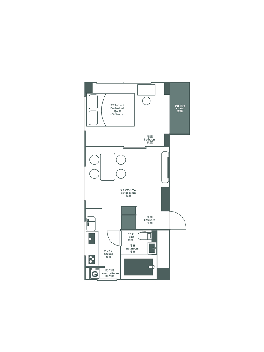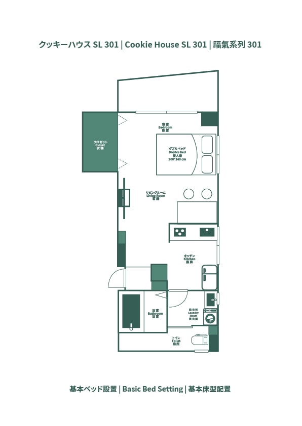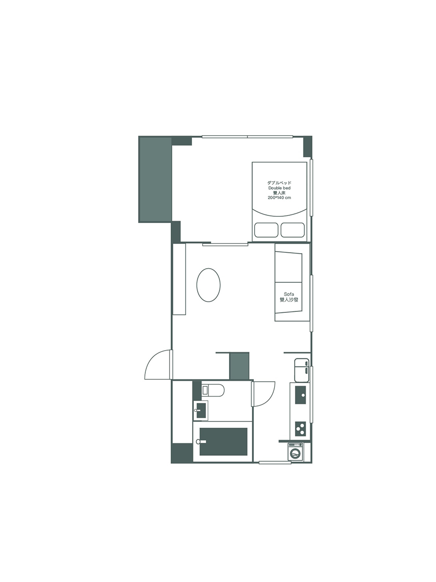 Modern Studio or 1DK apartment ( 33-37 m2 ) with fully equipped home kitchen, large storage space and laudry space.