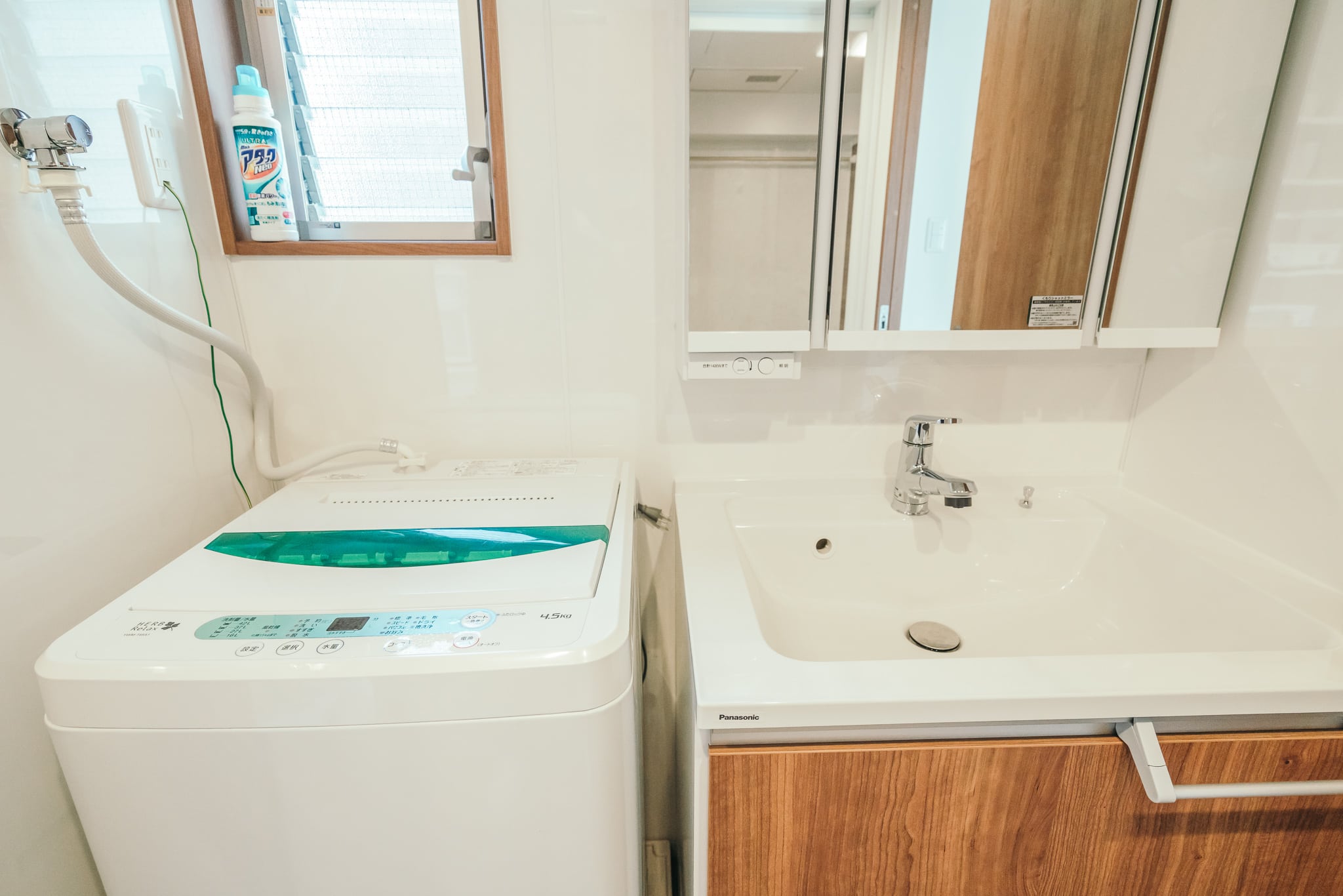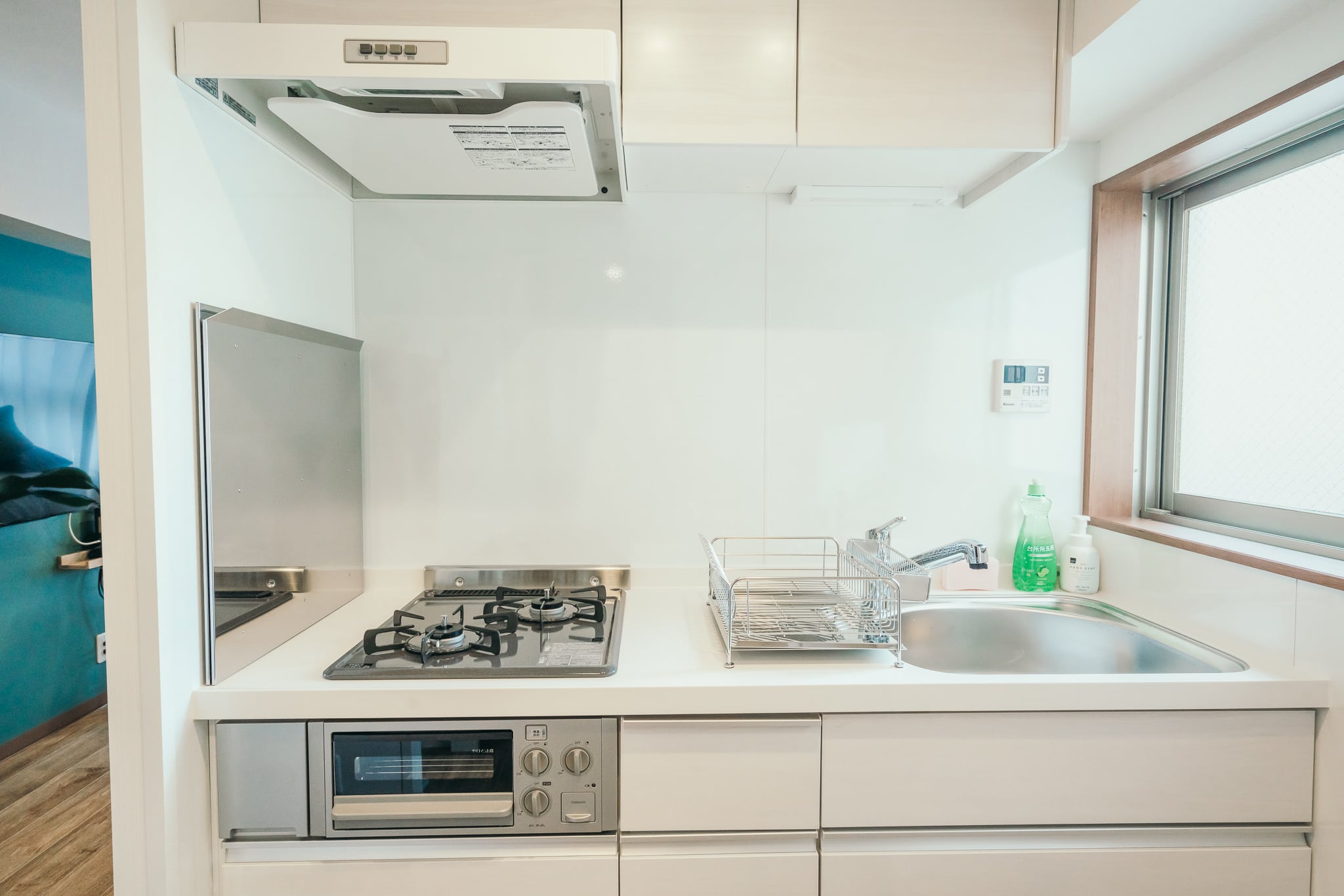 Misty GreenXCharcoal Grey| STUDIO Apartment in the heart of Higashi-Shinjuku & Shin-okubo. 5 min walk to Higashi-shinjuku station and 8 min to JR Yamanote Shin-okubo station. Spacious and comfortable, suitable for 2-3 adults. This cozy apartment comes with a large bedroom, sunny balcony, fully equipped kitchen, bathroom (with laundry space) and a separated toilet.