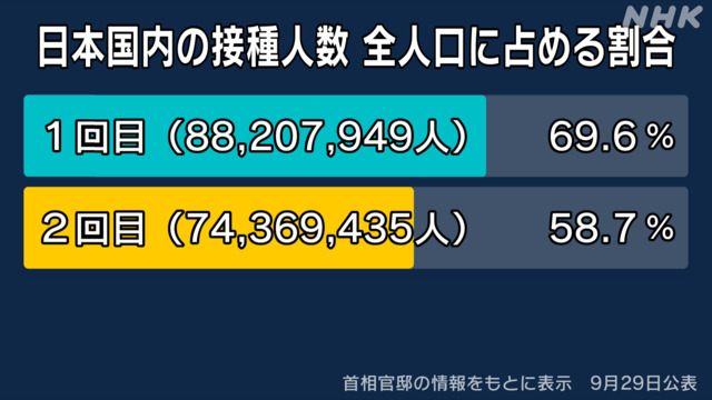 目前日本的接種率從今年(2021)2月份開始至執筆當下(2021/09),從一開始的AZ疫苗到現在則以莫德納和輝瑞可以選擇,而在第一劑已完成接種的全體人數,好不容易達到全國人民近7成,而完成第二次接種的人則是全國人民近6成。相對歐美國家來說,進度可是稍嫌緩慢,但日本政府也是無不努力開出各種對策,希望也能盡快的讓全民都能盡快完成第二次接種。而近期也有新聞指出,預計讓65歲以上已完成兩劑的民眾接種第3次。從疫情發生後,日本政府各種令人惋惜跟無奈的對策,這次在疫苗街中的努力下,也希望能挽回點民心吧!