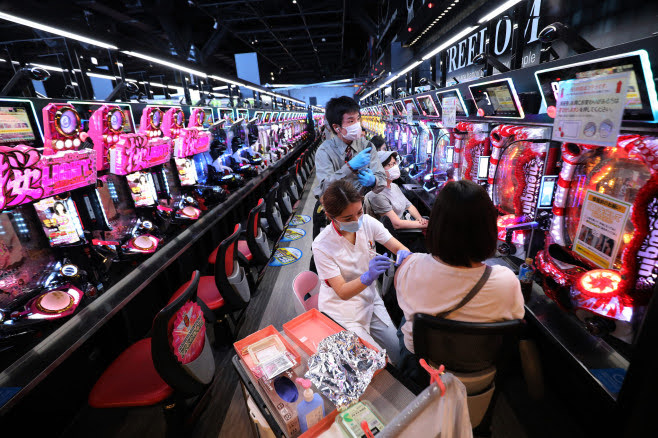 在日本有一個奇妙的現象,再怎麼郊區的城鎮裡,似乎都能找得到柏青哥遊藝場的身影,而總是有大膽創舉的大阪,在這次施打疫苗會場名單裡,居然出現了柏青哥遊藝場。這間位於大阪市北区天神橋筋商店街裡的一間柏青哥遊藝場,為了要一改過去疫情下,種種負面新聞的陰霾,該社長放棄了數千萬日圓的業績,毅然決然響應政府,將遊藝場設為疫苗的接種場所。在剛測試的階段,僅開放1500位的預約也在短時間內被預約一空。
