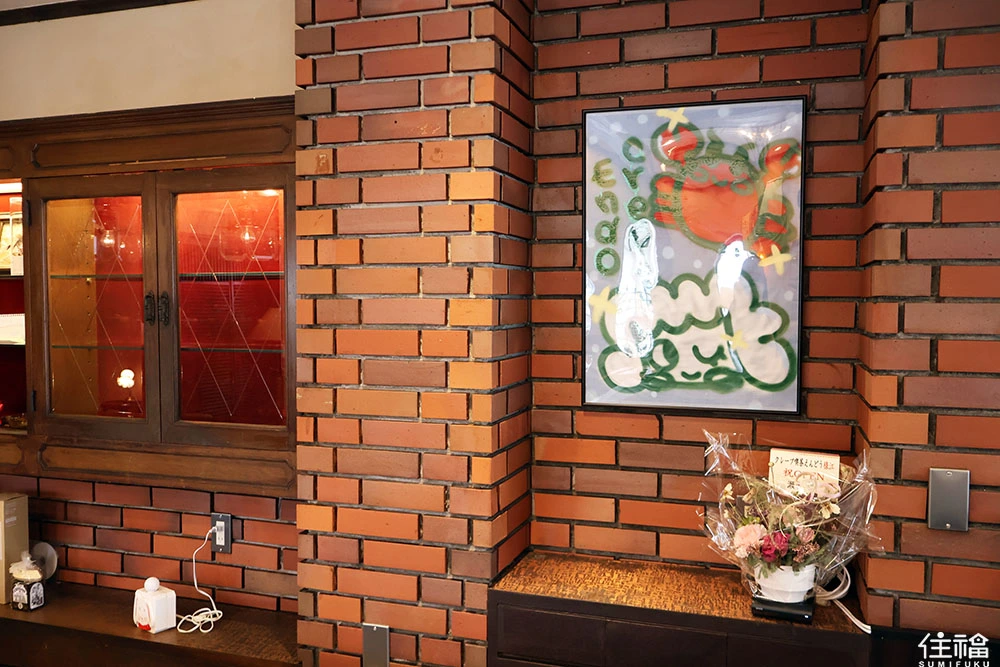 另外,也很值得留意牆面上一個小巧的設計細節,原是喫茶店的客人專用集點卡收集處,如今則改為遠藤可麗餅設計貼紙的販售區,一張 100 日圓,可以當作小紀念品帶回家,為這段造訪留下溫柔的記憶。
