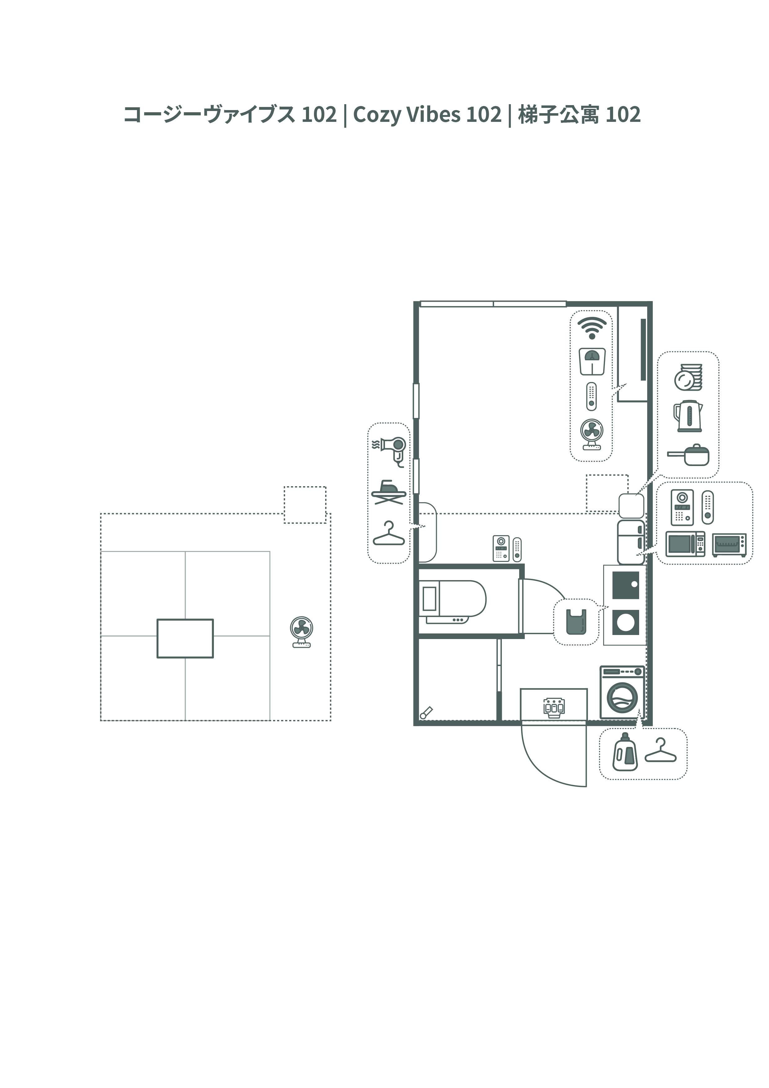 A compact yet fully functional apartment with LOFT. Space under the staircase is the living area, while the loft above serves as a cozy space for relaxation. With three color themes: