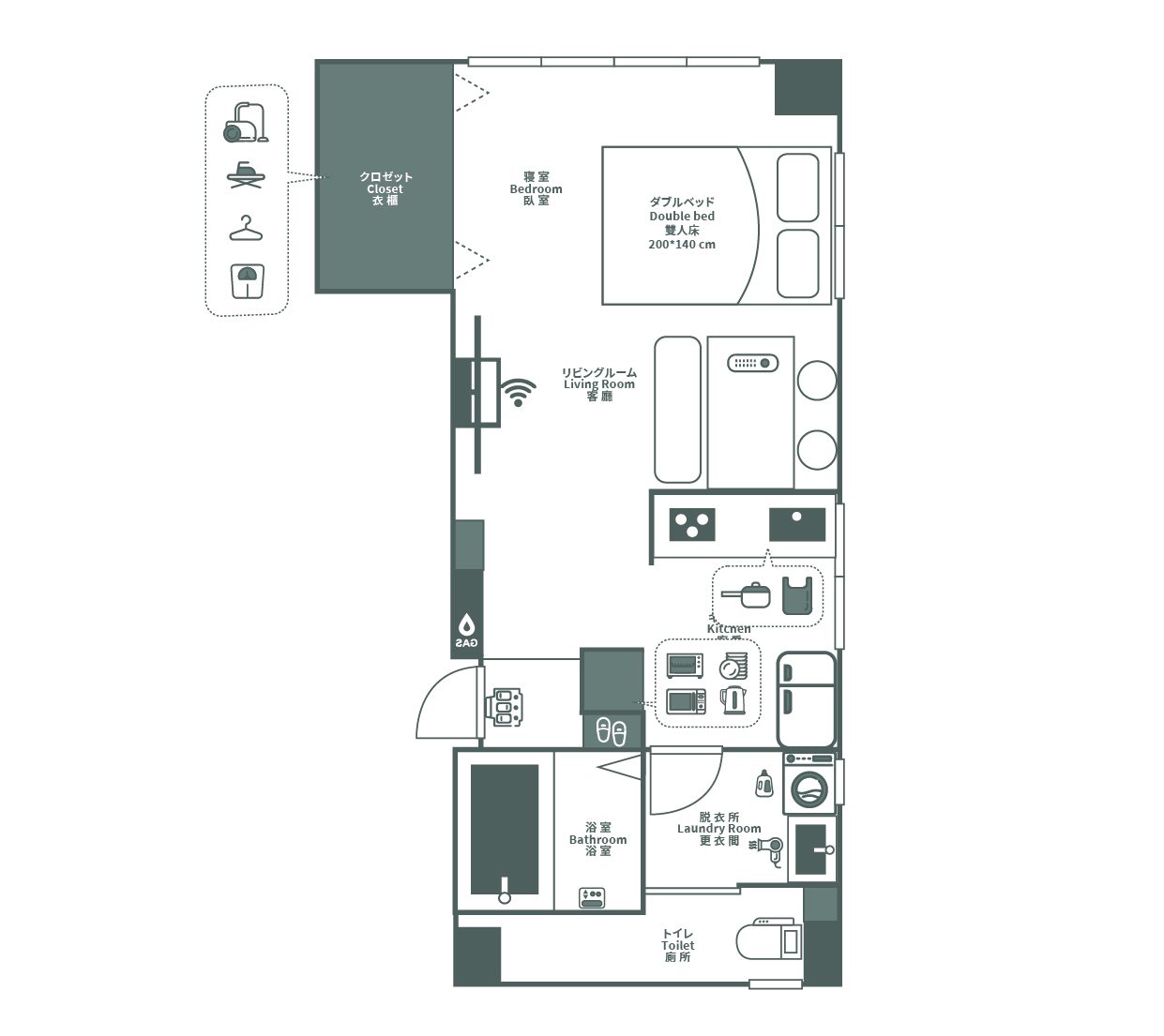 ※房間備品依個別房間和管理公司而有所調整,非適用於本接機方案所有介紹物件,請點開個別房間頁面確認,或事先諮詢客服 !