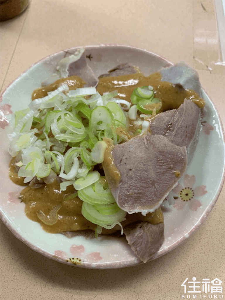 川燙豬舌則是比較中規中矩,就像在台灣吃的黑白切一樣。下次有機會,我會建議大家嚐嚐只有這裡才吃得到的”赤身サシ”(川燙豬肉),我看旁邊的老饕們可都是人人一盤喔!