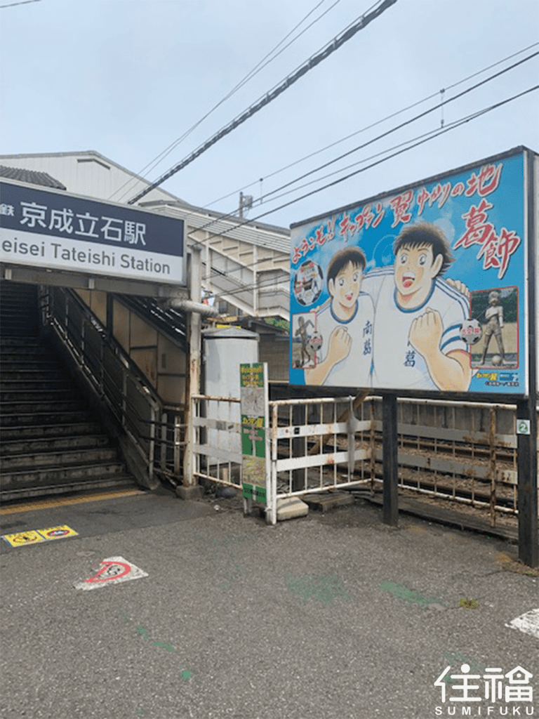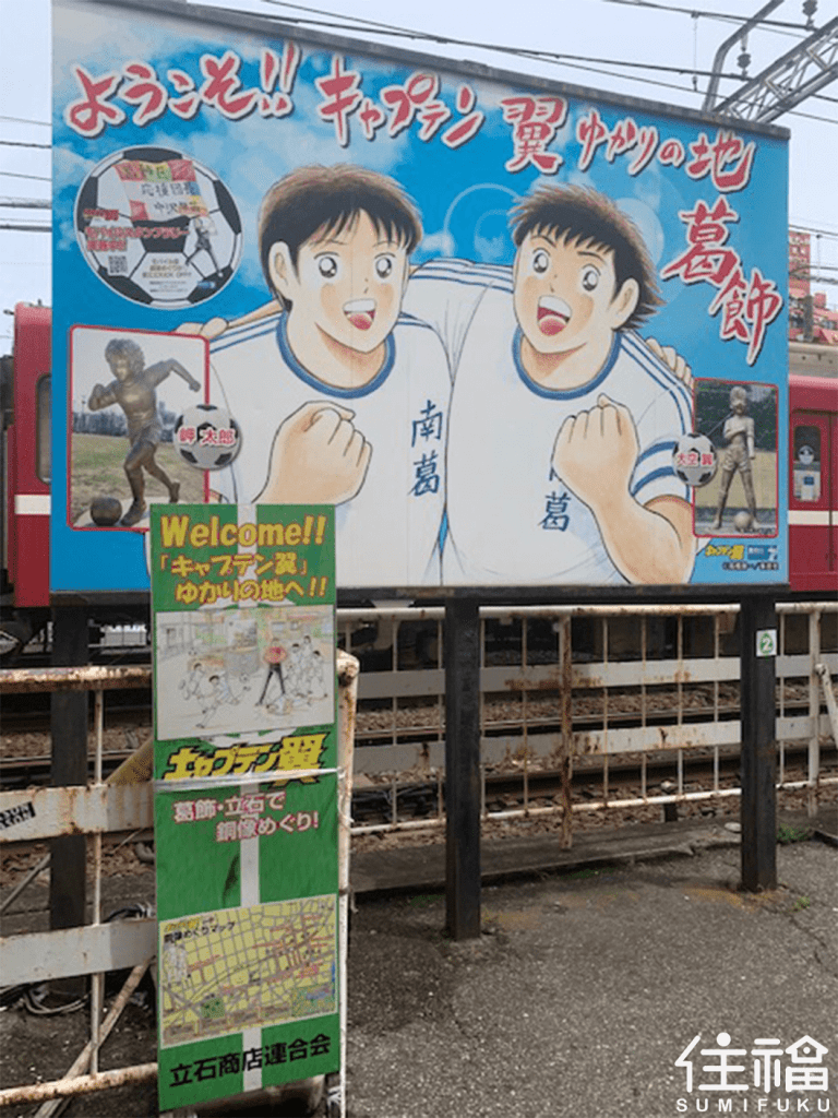 說到立石這個地方,喜歡看日本足球漫畫的人也許會有一點印象。因為聞名世界的漫畫“キャプテン翼”(台譯:足球小將翼)的創作者高橋陽一先生,從小就是在這一帶長大。因此來到這個社區裡,時不時就能遇到漫畫角色的紀念銅像和海報。