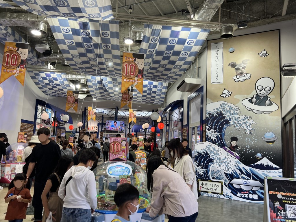 一進入到入口處,可以看到浮世繪風格的招牌,上面寫著「宇宙一のクレーンゲームセンターへようこそ(歡迎來到宇宙第一的夾娃娃機中心)」,好像踏入異世界一般,令人感到無比興奮。