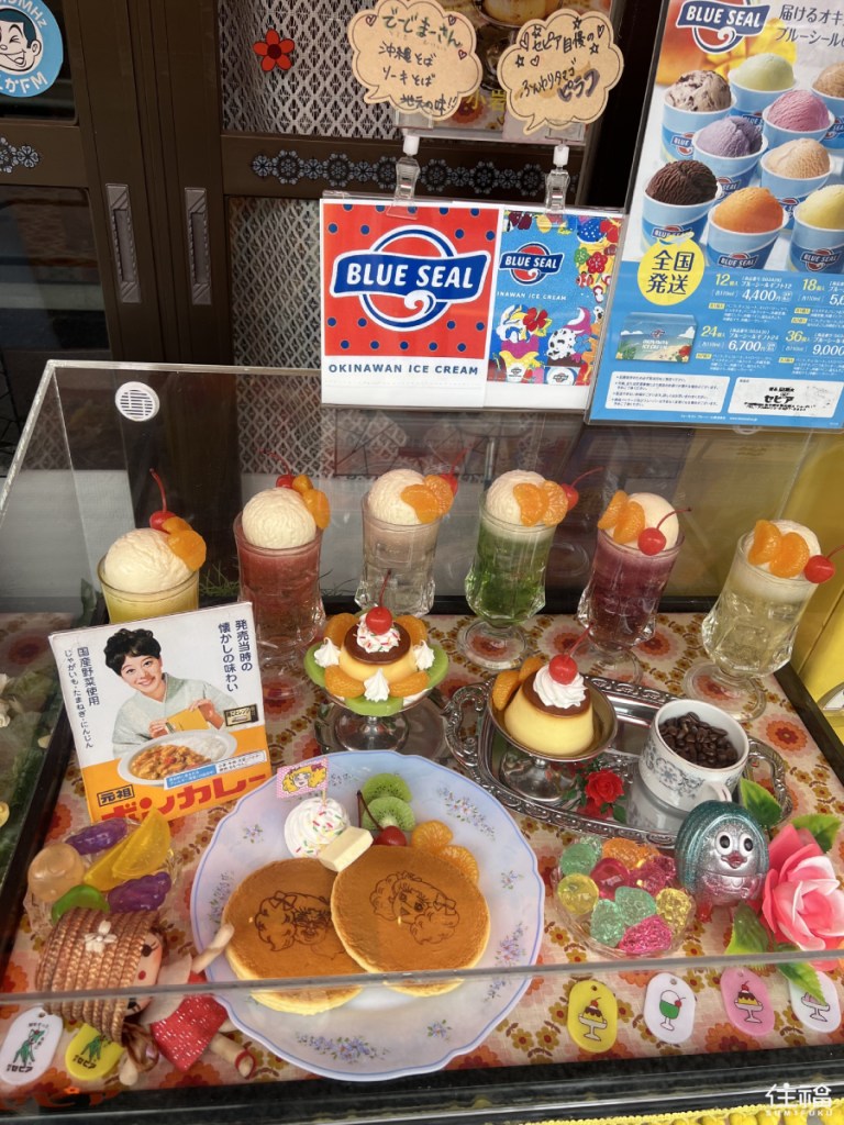 There is also a display stand outside which has realistic replicas of the food and drinks available. The most popular items on the menu include the original cream sodas, the purin and the Japanese-style pancakes. Sepia also serves Blue Seal ice cream, a specialty ice cream brand originating from America and prevalent in Okinawa.