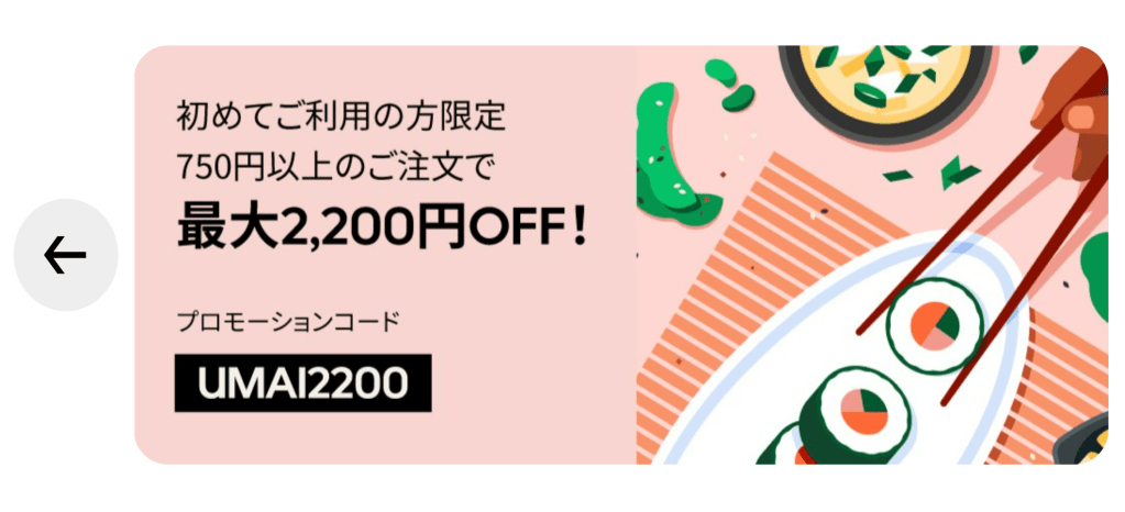 第一次使用別忘了輸入優惠碼【UMAI2200】,單筆消費750日圓以上就可以拿到最多2,200日圓抵用金,此優惠碼到2021 年 12 月 31 日 23:55截止。