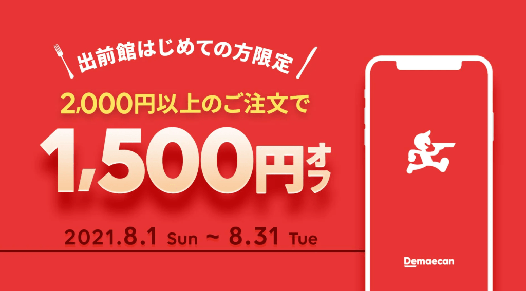 出前館也有給第一次使用平台的優惠碼:【new8】,單筆訂購滿2,000日圓以上,可以折抵1,500日圓,此優惠只有到2021年8月31日。
