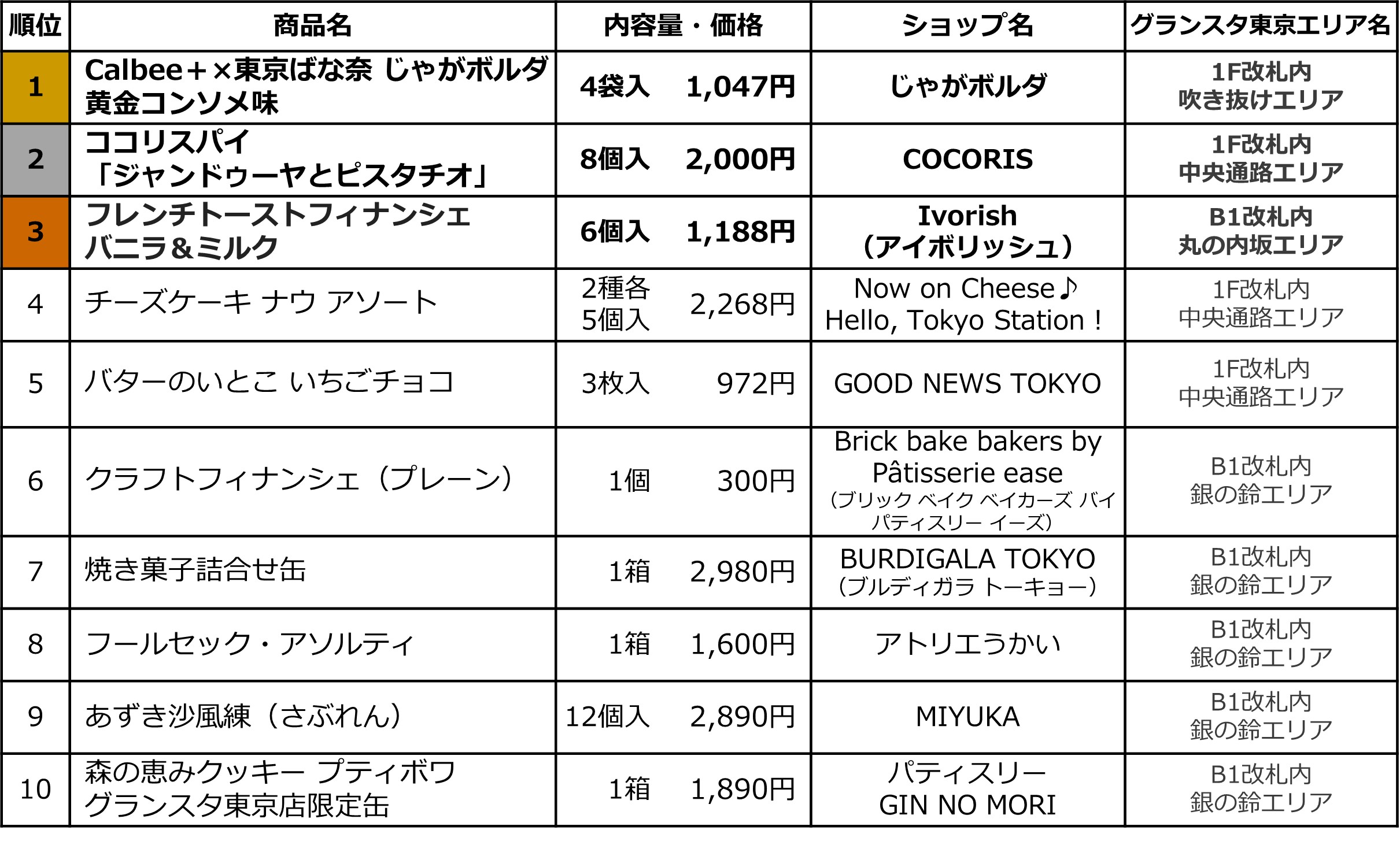 - 位置:Gransta Tokyo/1 樓剪票口內,中央通路エリア