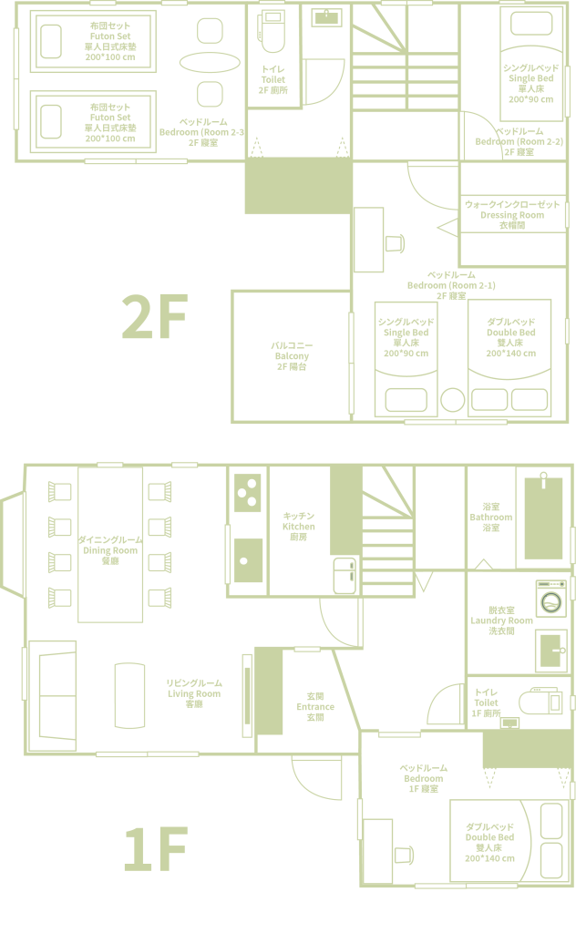 人数の追加について:宿泊人数に応じてベッド、ソファーベッド又は布団を用意させていただきます。宿泊人数の追加をご希望されるお客様は、事前にカスタマサービスまでご連絡ください。当日のお申し込みは対応できかねる場合もございます。