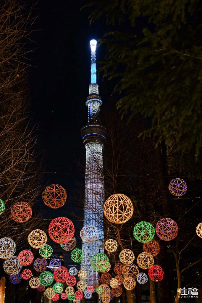 今年的晴空塔推出了兩種限定燈光秀,將晴空塔化身為超大聖誕樹的「香檳晴空塔」與閃閃蠟燭造型的「蠟燭晴空塔」,點亮了東京的天空,在整個街區散發出滿滿的聖誕氣氛。
