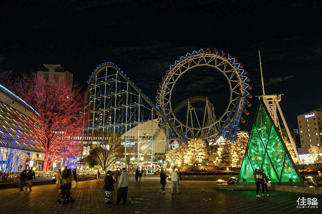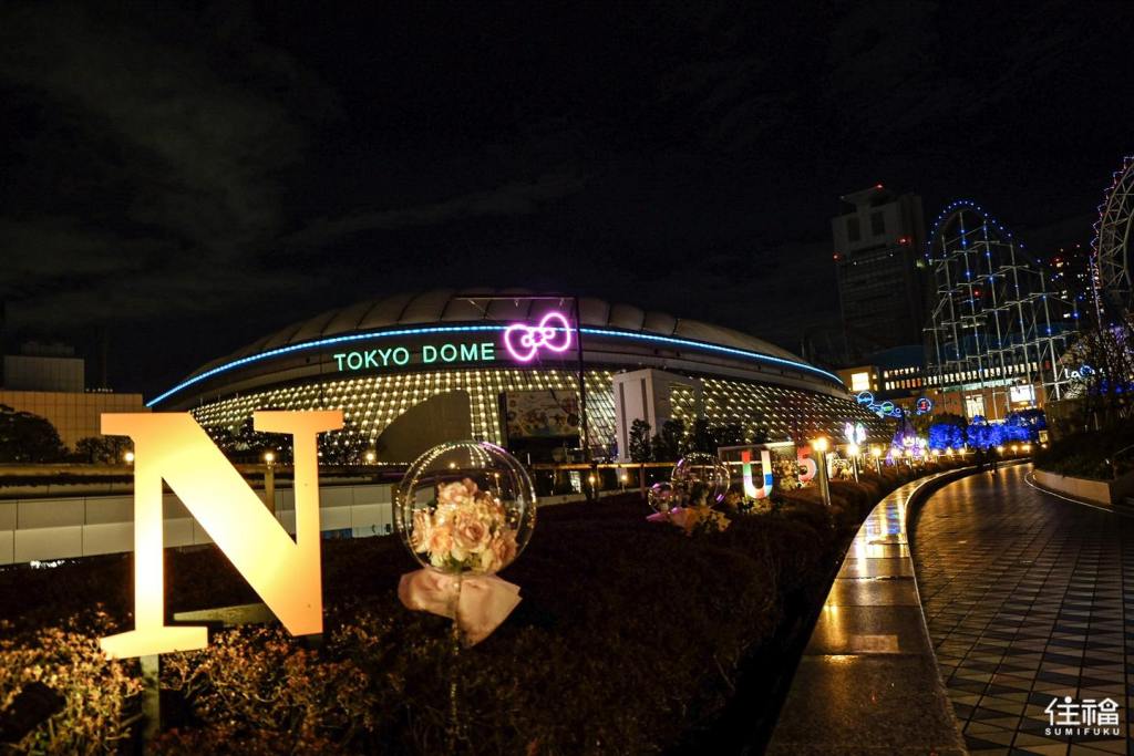 以『東京巨蛋』的象徵為背景拍攝的景點也登場了!連同摩天輪也變成燈光秀的一部分了,會跟著變換顏色喔!