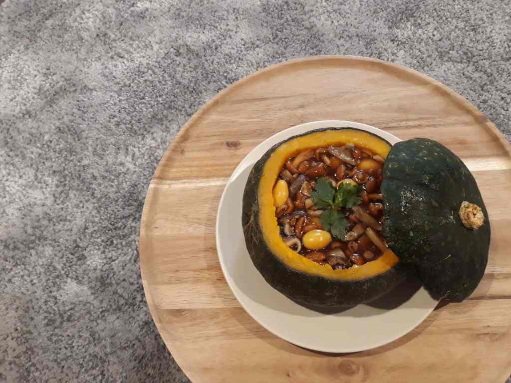 這次我們邀請到曾經在東京的日本懷石料理當廚師的 Denise L. 到我們的梯子公寓Cozy Vibes做料理,我們使用了日本秋天當季的食材:南瓜、菇類、銀杏做出了一道非常健康、好吃的「南瓜茶碗蒸」,直接利用南瓜本身來當作茶碗蒸的器皿,南瓜的香氣和甜味,還有細膩的口感,搭配上兩種菇類和銀杏做成的醬,充滿了秋天的味道!