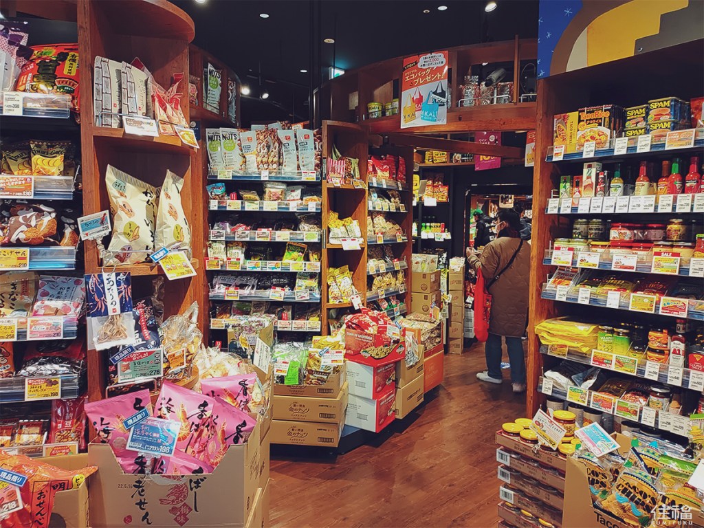 「KALDI」藍色的招牌非常顯眼,是日本國內蠻有人氣的進口食品雜貨連鎖店,許多地方都有設分店,連台灣也有「咖樂迪」,只是把英文「KALDI」招牌改成日文「カルディ」。店內販售的食品可說是琳瑯滿目,除了各種國外進口的糖果、餅乾、茶葉以之外,來自日本各地的調味料、即食湯包、地方特色料理包…等,木頭架子上永遠塞滿令人眼花撩亂的商品,一步不小心踏進店裡,想兩手空空出來是幾乎不可能的。
