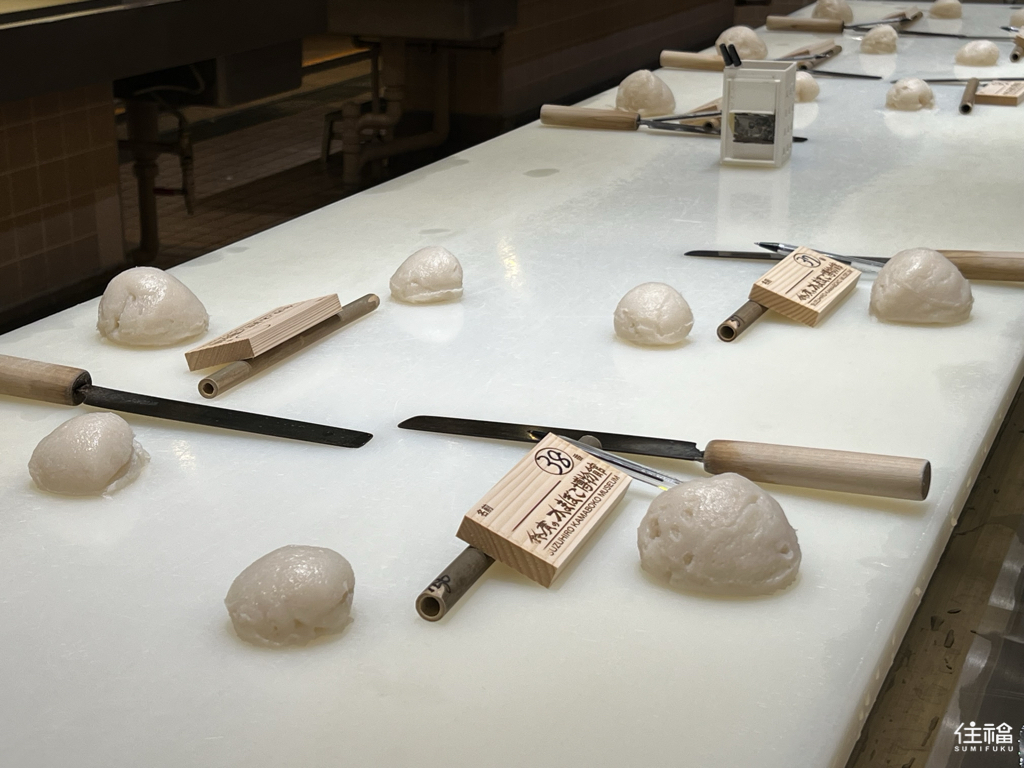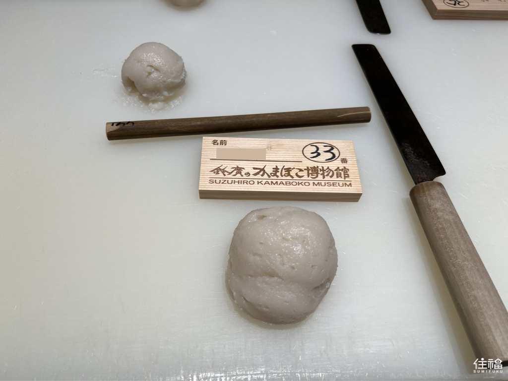 看著職人流暢地操刀示範,三兩下就完成一個完美的魚板,你可能會心想:「區區個魚板看起來有什麼難的?應該沒什麼問題吧!」但如果你這麼想,那問題可就大了(笑),接著實際挑戰你就會發現,職人之所以為職人,真的有他的道理!