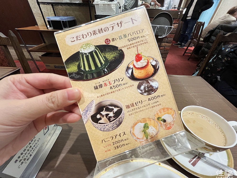 再來就是我個人私心必須推一下的「熱歐蕾咖啡」,由於冬天真的是太冷了,那天身體冷到不行,到ロマン亭點了杯歐蕾咖啡,喝起來比一般拿鐵來得更多奶味,杯子設計相當豪華,感覺穿越時空回到大正,喝下的那口,感覺順滑到不行,或許是因為真的太冷,喝了一口接一口,身體都暖了起來,神奇的是,因為太過順口,差點一下就咕嚕咕嚕喝完,差點失手就再點一杯來喝(笑),相信喜歡喝拿鐵的人會很喜歡這道飲品,熱情推薦!