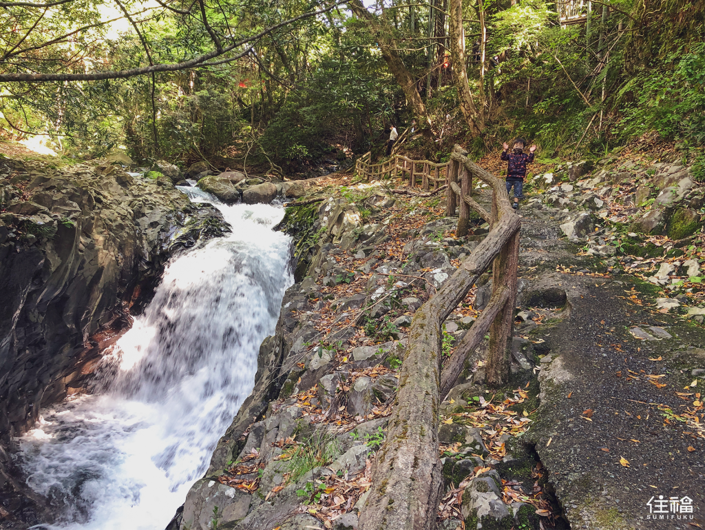 開始漫步走入前往瀑布的步道後,四周逐漸清涼起來,吹來的涼風搭配著清新的空氣,還有娟娟的流水聲,整個身心靈都有種「呼~~~」的感覺,壓力一口氣整個發散出來的感覺,真的不同於都市的感覺,大自然是真的有一種可以療癒人和讓人放鬆的魔力。