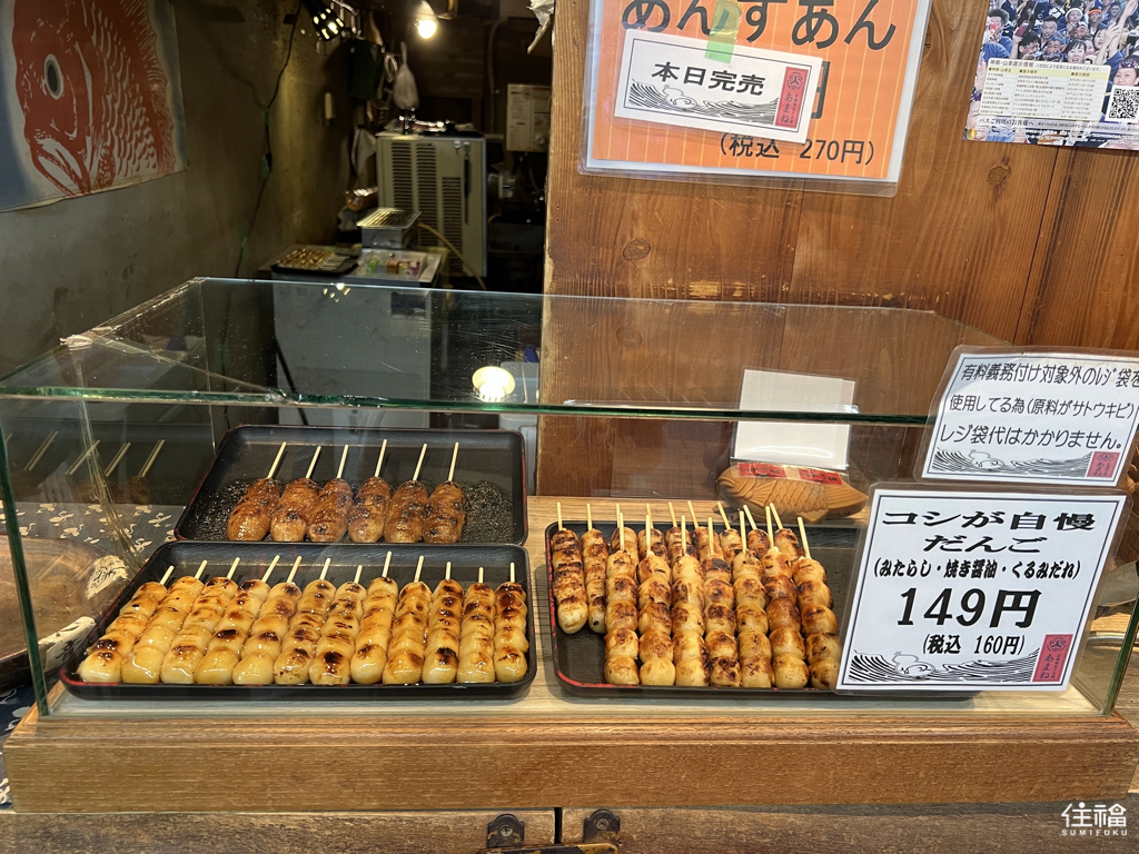 除了鯛菓子外,店裡還販售醬油糰子、黑糖羊羹等日式菓子。