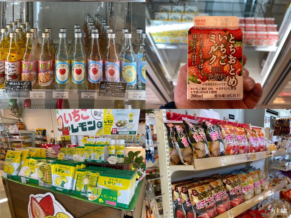 當然不免俗的也要帶點伴手禮回去,而在車站前面就有幾間各式伴手禮都非常齊全的店家,鬼怒川隸屬於栃木縣,所以可以看到許多栃木縣的許多特產,像是草莓系列的、檸檬牛奶系列跟那須高原的起士系列都是超人氣伴手禮。當然如果不想跑太遠,或時間太趕,就在站內名叫ACCESS TOBU的小型便利店,也可以買到許多很道地的特色伴手禮喔!
