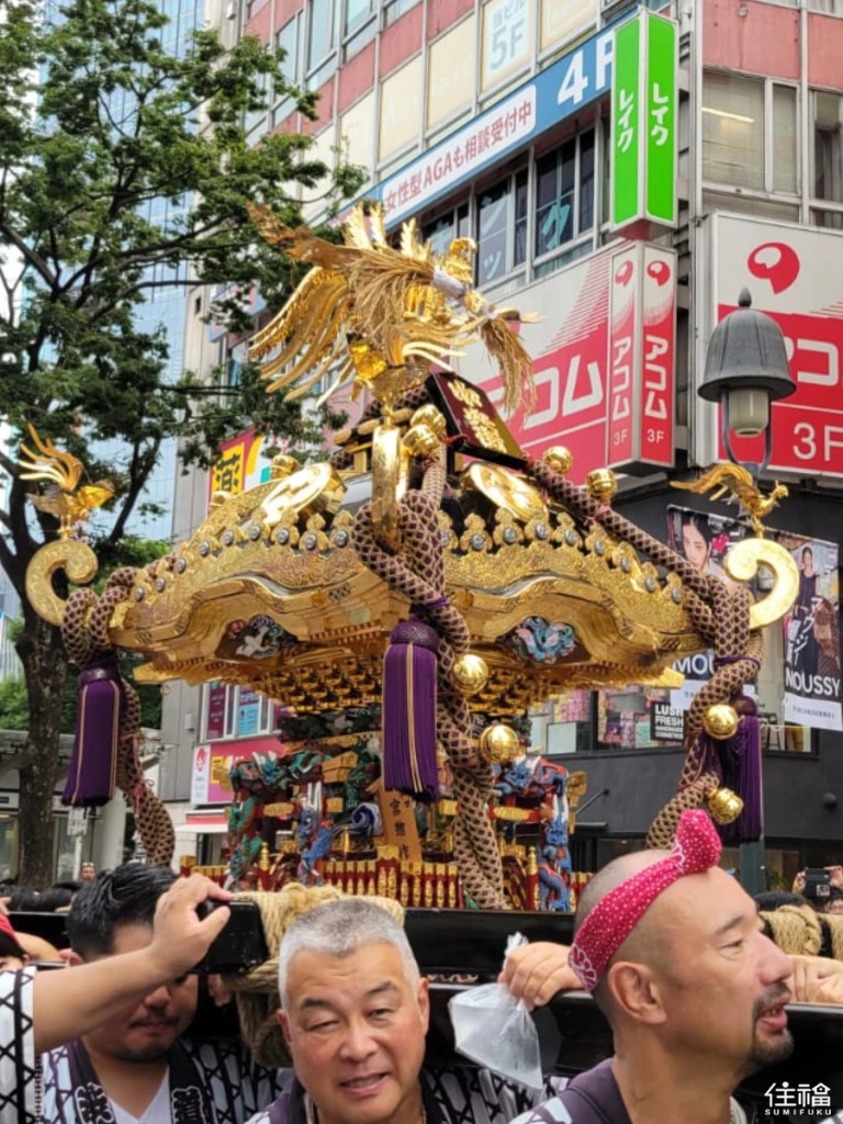 - It features a grand parade of mikoshi (portable shrines), with up to 14 shrines carried by locals through Aoyama and Shibuya. The locals bounce the mikoshi rhythmically up and down to the beat of a whistle and chants. Finally, the highlight comes when all shrines converge in front of the famous Shibuya 109 building, creating a spectacular outdoor atmosphere.