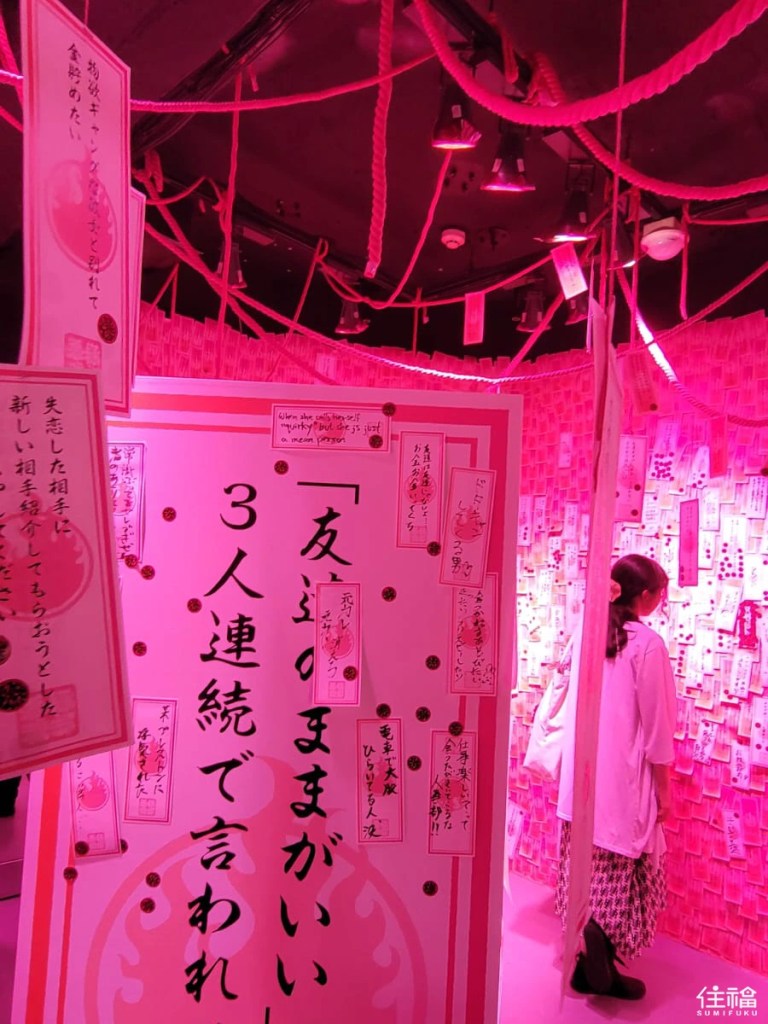 In a creative twist, this corner includes humorous or dark confessions anonymously shared by visitors, displayed within a 360-degree pink-lit space around the shine procession area.