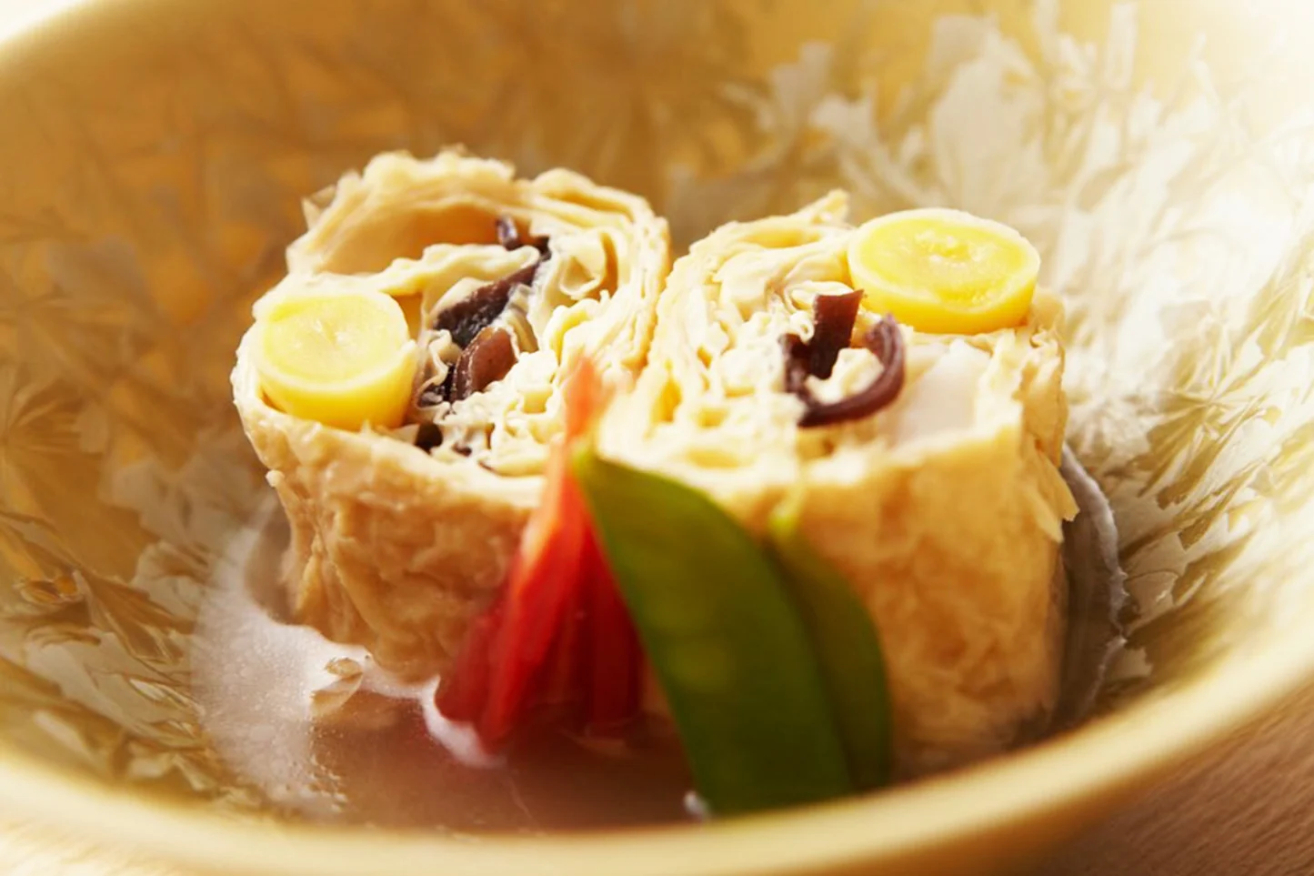 京都湯葉的吃法有許多,比方沾醬油(或是芥末醬油),也有加入蔬菜、菇類、味噌、豆腐等等一起燉煮,變成類似火鍋的吃法,又或者可以放裹粉後油炸成湯葉天婦羅!