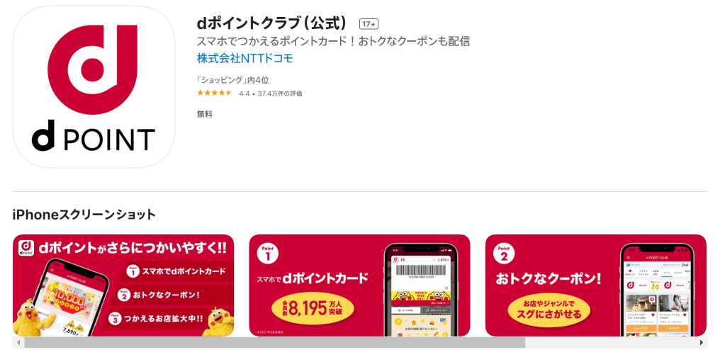 D POINT是由日本電信DOCOMO提供的點數累積服務,在日本,不管你在哪間商店買東西,幾乎都可以用D POINT來累積點數,1円=1點,在特定商店還能拿來購物,非常實用,如果是實體卡片的用戶,也能下載D點數的軟體,跟實體卡片做連結,如果忘了帶卡片,也能直接刷條碼累積點數。