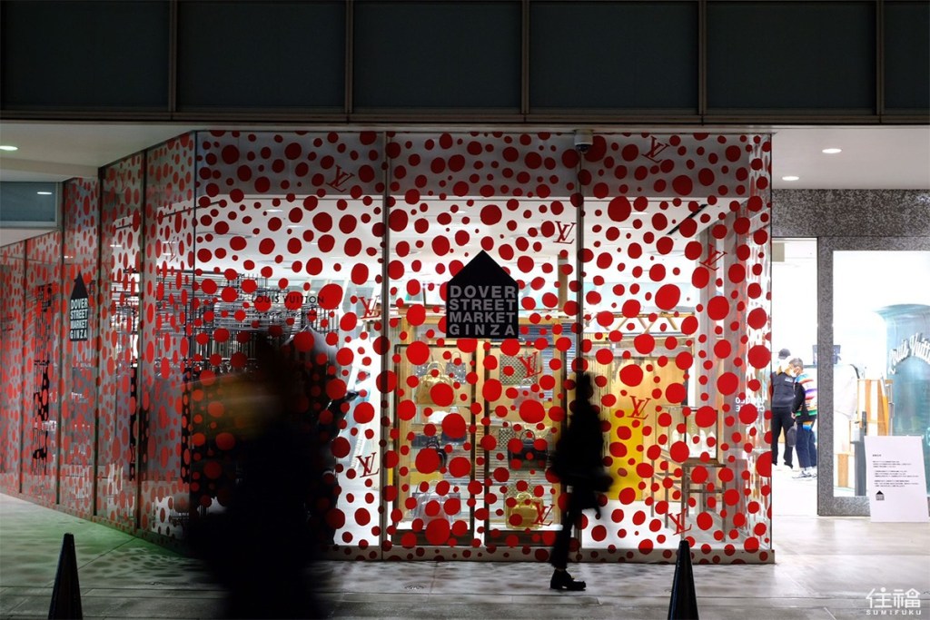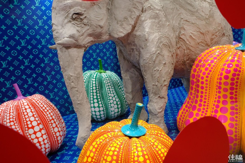 東京車站附近的銀座DOVER STREET快閃裝置藝術,設計理念以非洲象作為代表,喜歡帶入非洲元素的路易斯威登,在DOVER STREET的櫥窗中,以草間彌生的南瓜造型,創造出充滿活力的東京南瓜叢林。